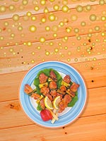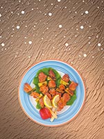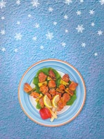 ![]() 田螺生菜包大豆酱 | ![]() 炒饭 | ![]() 藏红花和海鲜意式炖饭 |