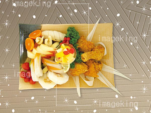 炸鸡和水果小吃