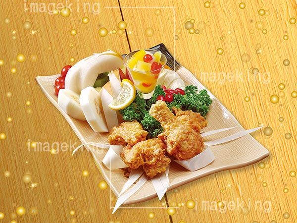 炸鸡和水果小吃